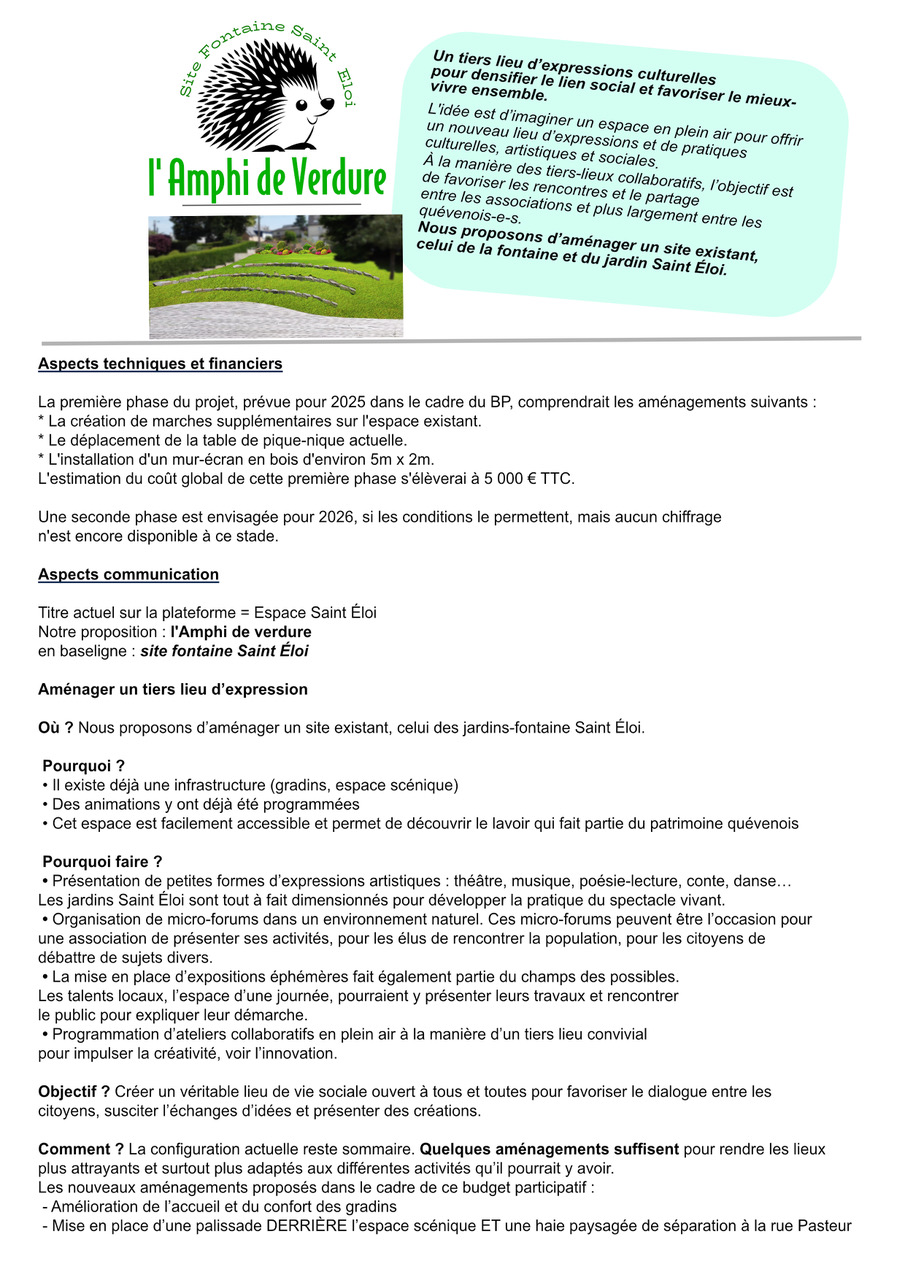 Où ? Nous proposons d’aménager un site existant, celui des jardins-fontaine Saint-Eloi.